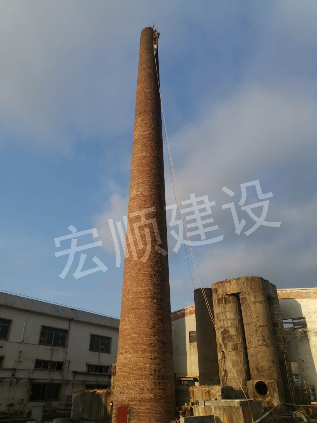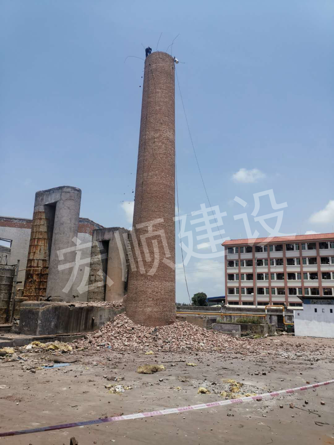 每一步都必須謹慎,還要保護好周圍措施,配合業主,順利拆除完煙囪