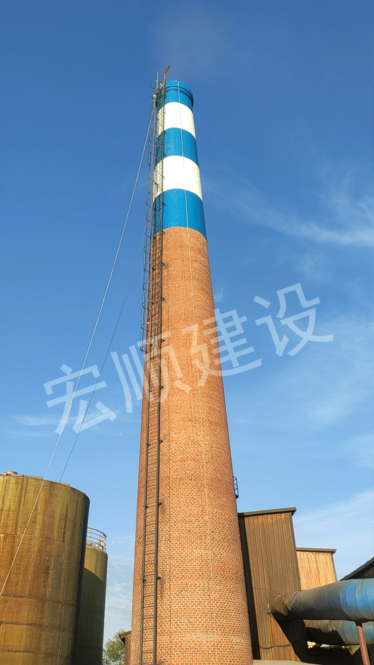 宏順建設建議先對磚煙囪加固,爬梯加固,頂口進行維修,如下: