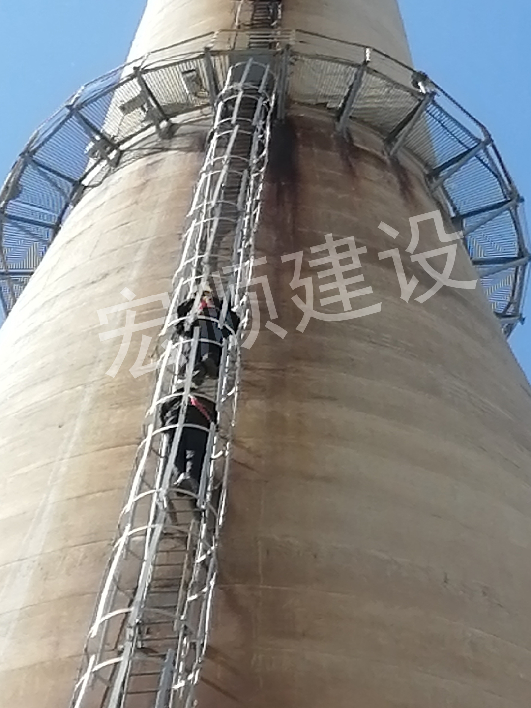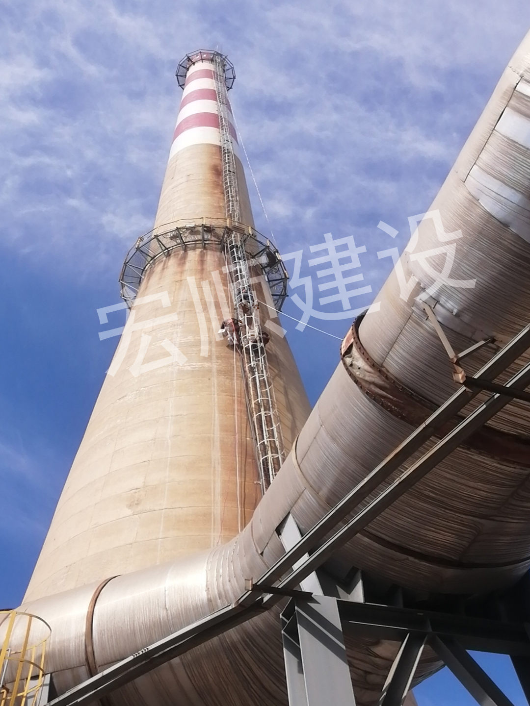 當(dāng)水泥煙囪年代久了那就需要更換爬梯平臺或者除銹防腐了