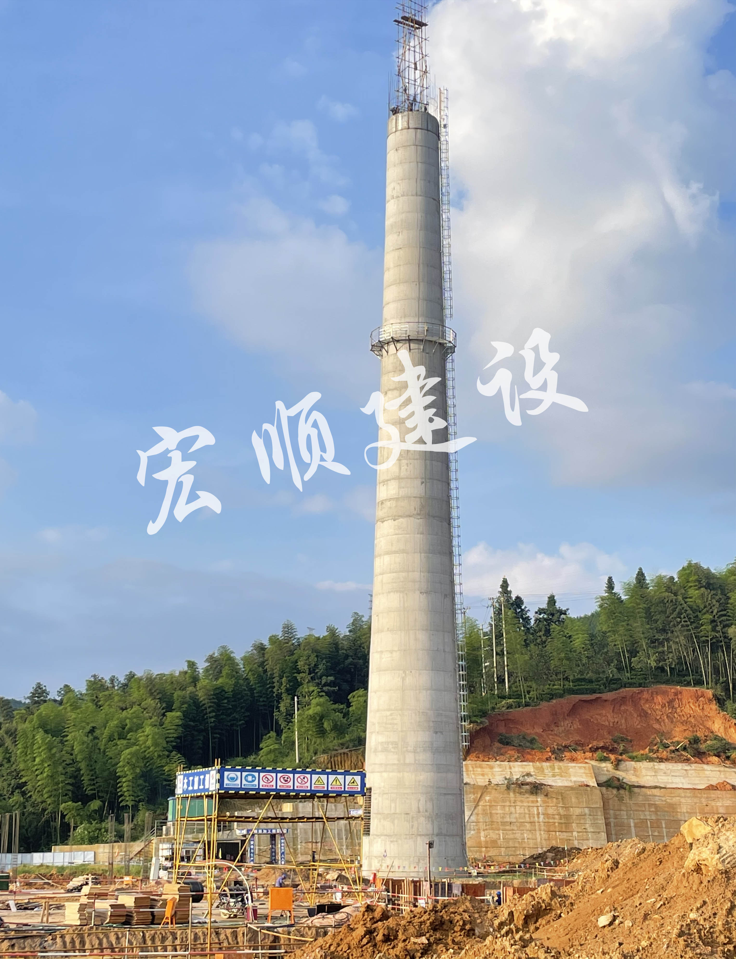 熱烈祝賀福建光澤80米煙囪新建順利封頂大吉